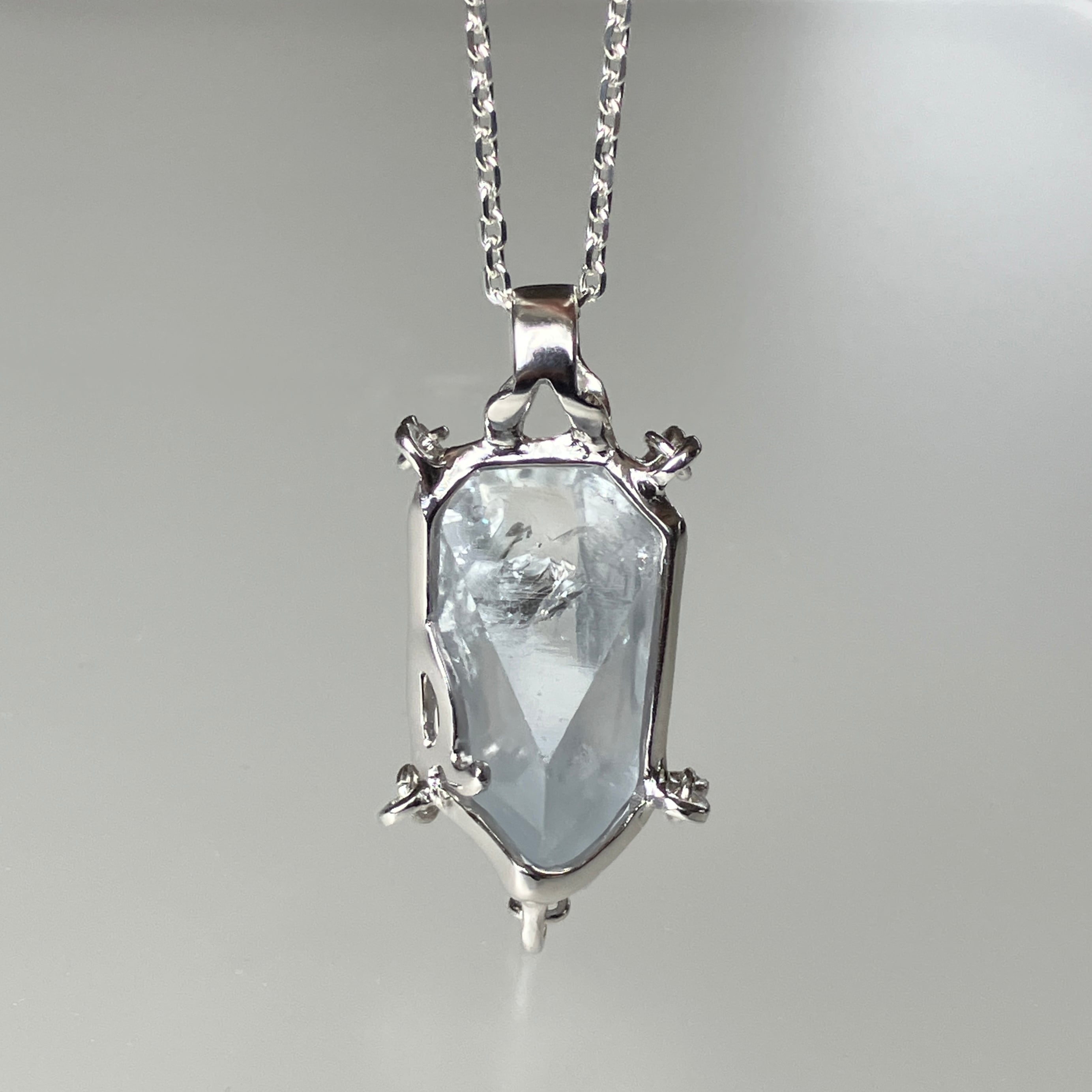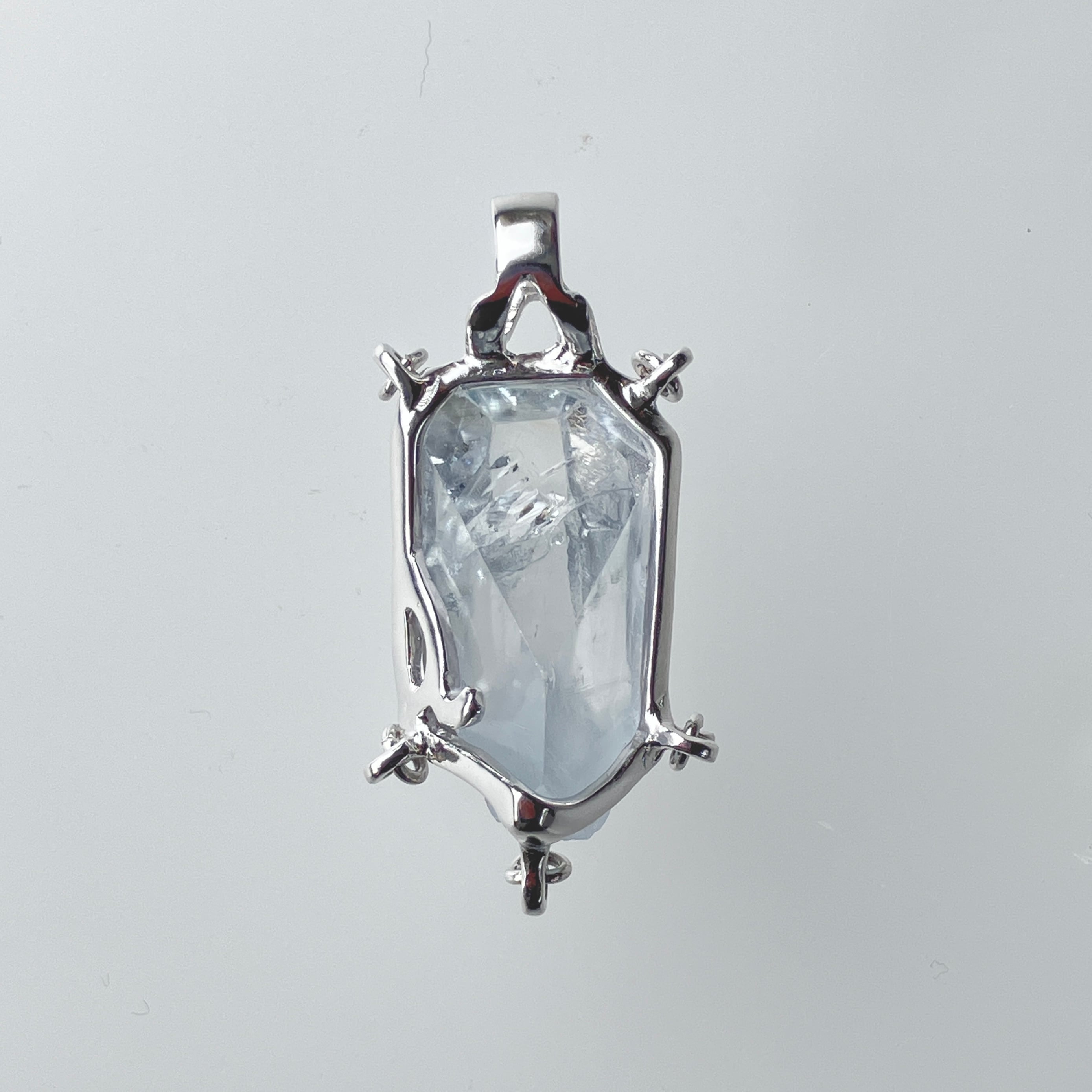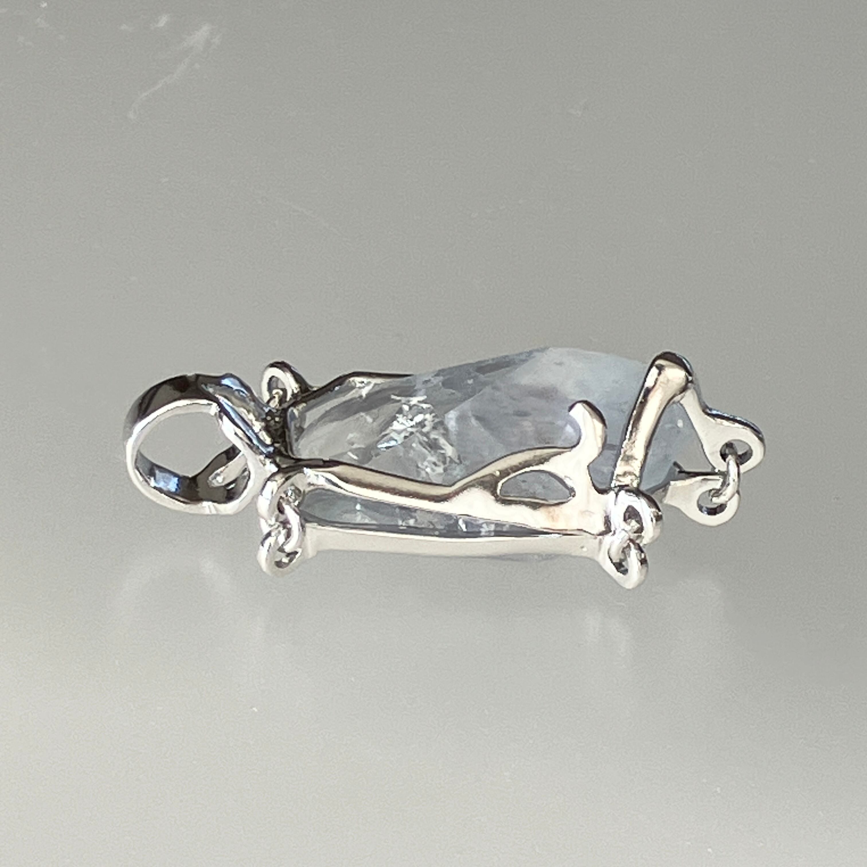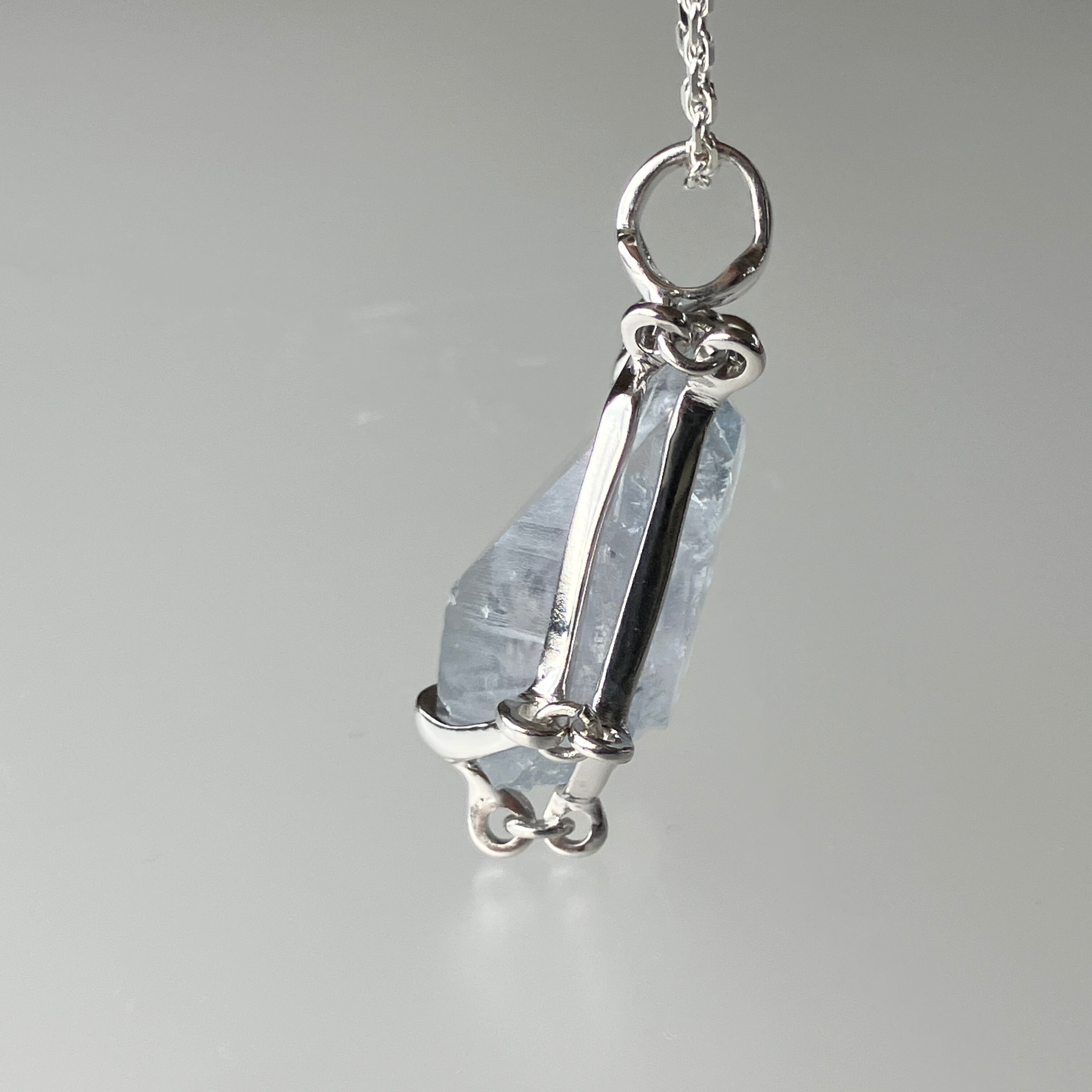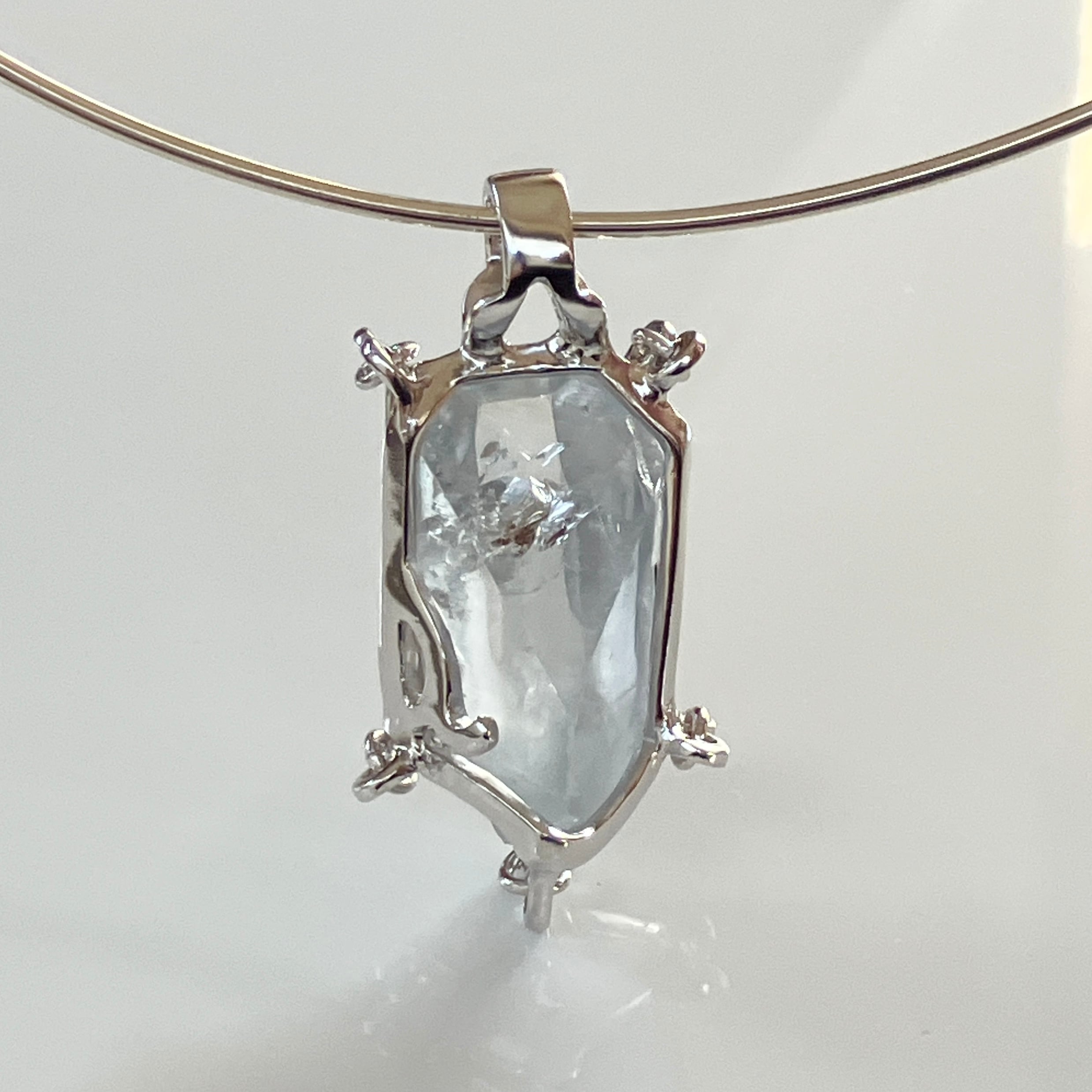 硬度が低く衝撃に弱いため加工が難しいのですが、この美しい結晶を身につけていただきたいと思い、silverでペンダントを制作いたしました。