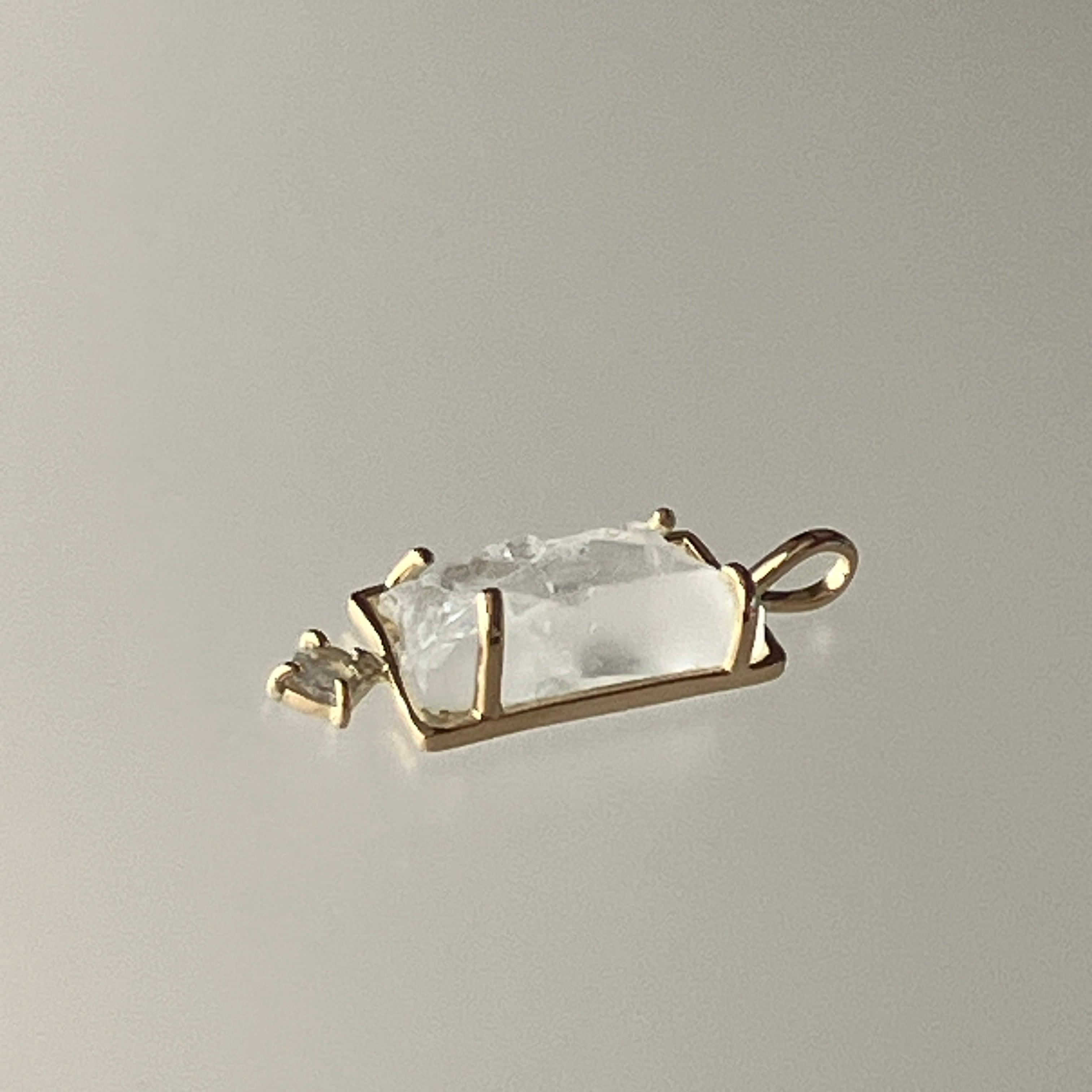極めて希少なロシア産フェナカイトと、スライスカットされたダイヤモンドの原石を使用し、18金イエローゴールドでペンダントトップに仕立てました。