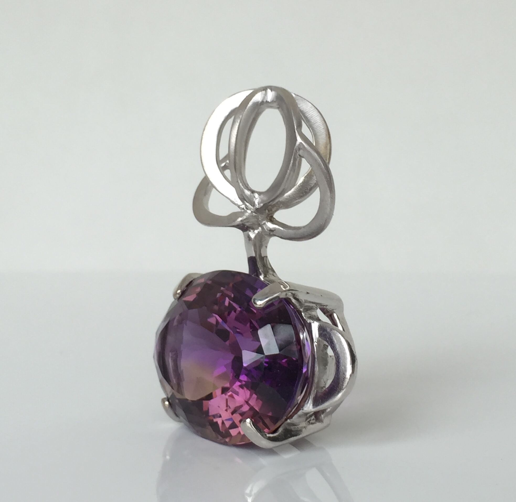 シルバー部分は艶を抑えたエレガントな仕上がりで、アメトリンの鮮やかなカラーを上品に引き立てています。